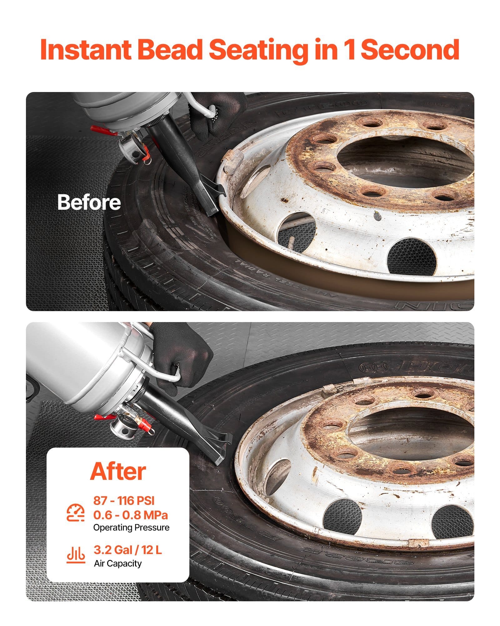 Portable Tire Bead Seater, 3.2 Gal / 12 L Air Bead Blaster, Handheld Tire Inflator Tool, 87-116 PSI Operating Pressure, Trigger Seating Inflator for Car, Compact SUV, Light Truck, E-Bike, RV, ATV