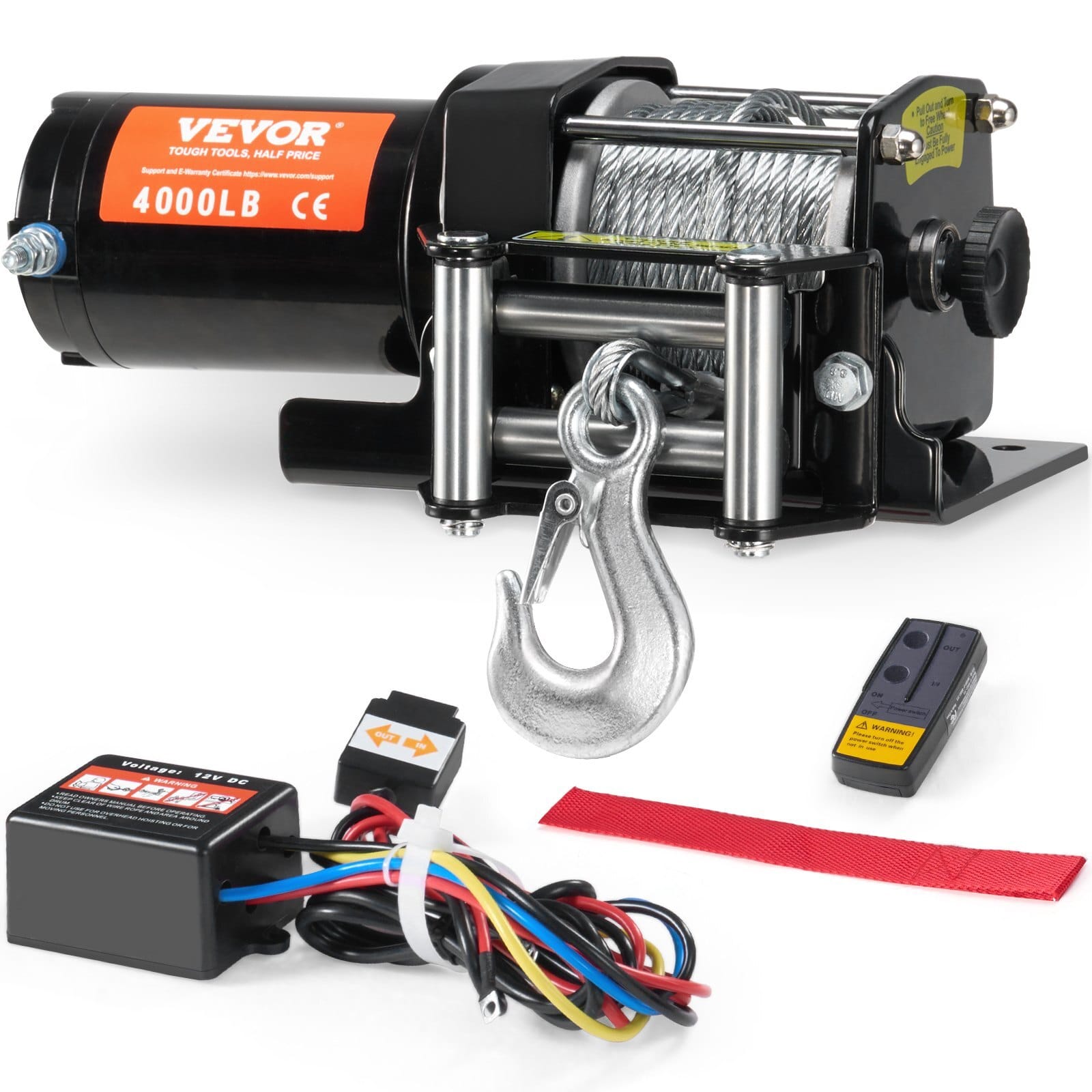 Electric Winch, 4000 lb Line Pull Capacity, 12V DC ATV/UTV Winch with ?¦3/16 in x 39 ft 7 Strands Steel Cable Roller Fairlead Wireless & Wired Remote Control, IP55 Waterproof for Towing UTV ATV