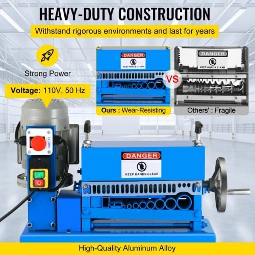 Blades: 10,Item Dimension: 23 x 11 x 14.5 inch / 58 x 28 x 37cm,Voltage: 110V 50Hz,Cable Diameter:0.06 -1.5 inch / 1.5-38mm,Holes: 11,Material: Aluminum Alloy,Power: 370W,Cutting Speed: 88ft/min (27 m/min),Item Weight: 84 lbs / 38 kg