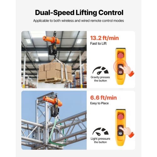 Lifting Speed: Fast: 13.2 ft/min (4 m/min); Slow: 6.6 ft/min (2m/min),Lifting Height: 20 ft/6 m,Control Type: Wired,LiftingCapacity: 2200 lbs/1000 kg,Item Model Number: BLH10,ProductDimensions: 20.7 x 6.7 x 10.8 in/525 x 170 x 275 mm,Net Weight:63.9 lbs/29 kg