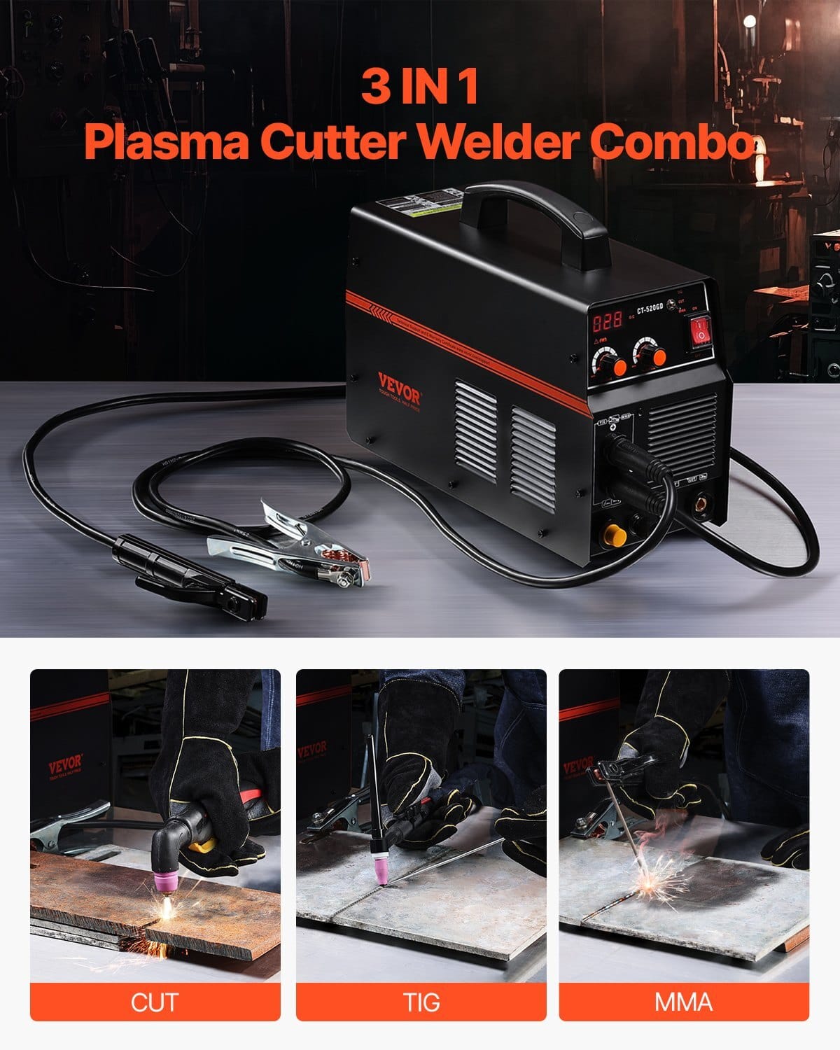 Operating Pressure: 2.5-3.5 Bar Cutting Pressure,Net Weight(Including All Accessories): 32.4 lbs / 14.7 kg,Item Model Number:CT-520GD,Functions: CUT / TIG / MMA,Input Voltage: AC 110V /220V,Product Dimensions: 19.3 x 7.3 x 13 in / 490 x 185 x 330mm,Cutting Type: Non-Touch