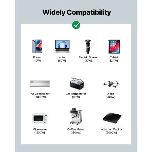 Compatible Battery Voltage: 12VDC,Number of Ports: 2 x USB; 4 x AC;1 x Type-C,Rated Output Power: 4000W,Item Model Number:TP-4000W,Item Dimensions: 15.35 x 8.07 x 6.50 in / 390 x 205 x 165mm,Inverter Output Voltage / Frequency: 120VAC 60Hz,Net Weight:15.65 lbs / 7.1 kg,Main Material: Aluminum Alloy