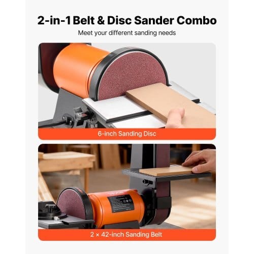 VEVOR 6″ Disc Sander & 2″ x 42″ Belt Sander, 420W ProfessionalBench Belt Disc Sanders Combo with Multiple Angle Adjustments forDIY Woodworking, Furniture Refinishing, Knife Sharpening