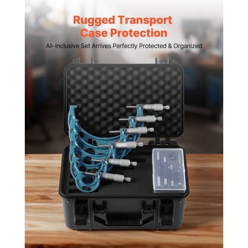 Product Dimensions (5-6 in range): 270 x 140 x 22 mm,Range 1-2in:Accuracy ±0.0002inch (±0.004mm),Range 2-3in: Accuracy ±0.0002inch(±0.005mm),Range 3-4in: Accuracy ±0.0002inch (±0.005mm),Range4-5in: Accuracy ±0.0003inch (±0.006mm),Range 5-6in: Accuracy±0.0003inch (±0.006mm),Locking Mechanism: Yes ,Item Model Number:5201-6,Range 0-1in: Accuracy ±0.0001inch (±0.003mm),Net Weight:8.18 lbs/3.71 kg,Units: Imperial units only, non-switchable