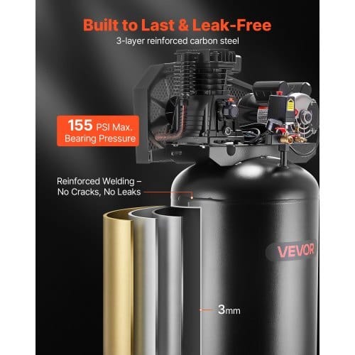 Motor Rated Power: 3.7HP,Tank Capacity: 60 Gallon,Air Flow Rate: 8SCFM at 90 PSI,Item Model Number: SL-2070/155-10A204L,Item Type:Heavy-Duty Oil-Lubricated Air Compressor ,Max Working Pressure: 155PSI,Product Dimensions: 24.0 x 20.9 x 55.5 in / 610 x 530 x 1410mm,Net Weight: 192.7 lbs / 87.4 kg,Voltage / Frequency: AC230V60Hz, Single Phase (No-Plug)