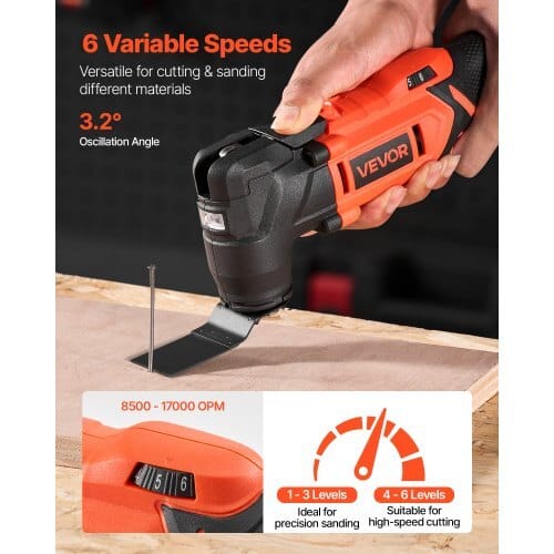 OPM Range: 8500 – 17000 OPM,Oscillation Angle: 3.2°,LED Light:Yes,Quick Blade Change: Yes,Operating Voltage: DC 20V,Item ModelNumber: GX-LMT02,Speed Settings: 6-Speed Adjustment,ProductDimensions: 11.4 x 4.4 x 2.8 in / 290 x 114 x 72 mm,Net Weight: 2.5lbs / 1.15 kg