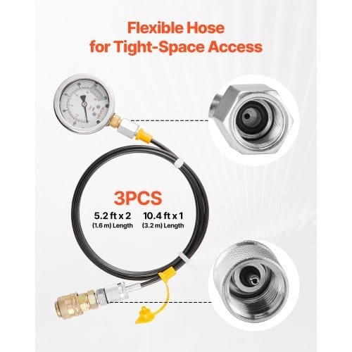 Hose Length: 5.2 ft/1.6 m; 10.4 ft/3.2 m,Item Model Number:YS-0200A,Product Weight: 10.6 lbs/4.8 kg,Gauge Units: Bar,PSI,Gauge Material: SUS304, Glycerin, Brass