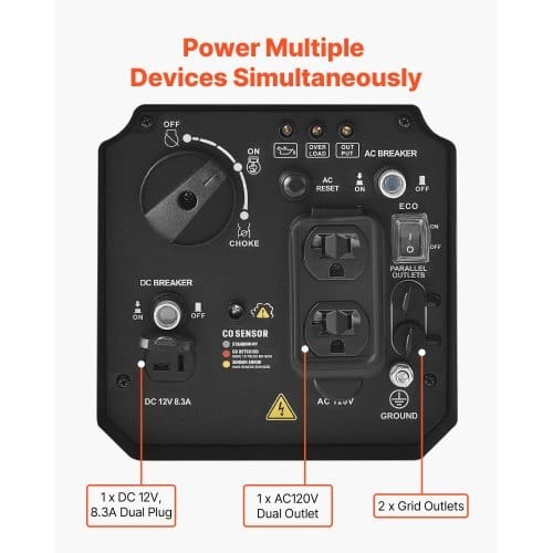 VEVOR Inverter Generator, 2900W Peak Watt Quiet Inverter Generator,Portable Inverters Generators for Home Use, Gas Powered, Compactand Lightweight Design – Stable Power, CO Sensor, Long Run Time