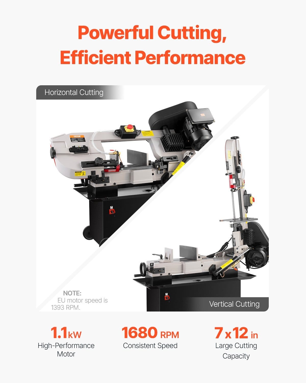 Blade Length: 93 in/2362 mm,Item Height with Blade Upright: 62.6in/1590 mm,Clamp Plate Rotation Angle: 0-45°,Power Cord Length:78.7 in/2 m,Foot Wheels: 4,Blade Teeth: 5/8 TPI,Voltage: AC110/220V60Hz (US), AC220V 50Hz (EU),Item Model Number: BS-712N,RectangularCutting Size: 7 x 12 in,Item Dimensions: 47.2 x 16.9 x 39 in/1200 x430 x 990 mm,Power: 1.1 kW,Item Weight: 306.4 lbs/139 kg,Max Speed:260 FPM (US), 65 m/min (EU)