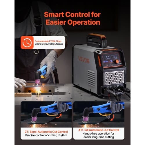 Type: Non-Contact Plasma Cutter,Clean Cut Capacity: 1/2″ (12 mm) @110V ; 9/16″ (14 mm) @ 220V,Output Current Range: 110V: 20-52A ;220V: 20-65A,Max Cut Capacity: 5/8″ (16 mm) @ 110V ; 3/4″ (20 mm) @220V,Item Model Number: CUT-65,Product Weight: 20.5 lbs / 9.3kg,2T/4T Function: Yes,IGBT Technology: Yes,Input Voltage: DualVoltage (AC 110V/220V),Adjustable PT/PA Time: Yes,ProductDimensions: 14.4 x 7.5 x 11.4 in / 367 x 190 x 290 mm,InputCurrent: 110V: 51A ; 220V: 32A