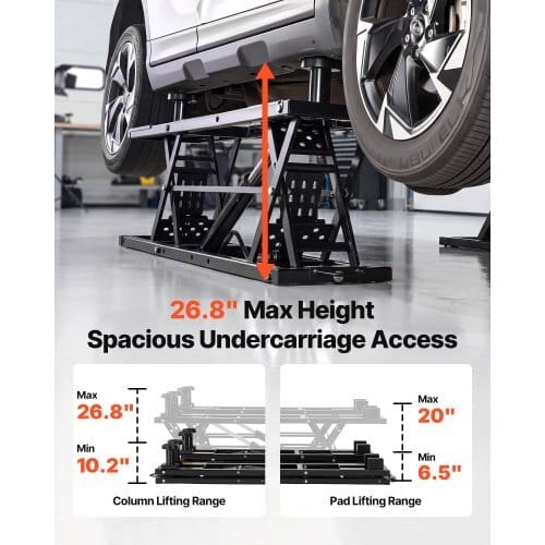 VEVOR Portable Car Lift, 7000 lbs Capacity, Heavy Duty Steel TruckLift with 26.8″ Max Height, Pneumatic Pump, Wheels, 4 Rubber Pads &4 Lifting Columns for Cars, SUVs, Trucks, Home Garage or ShopUse