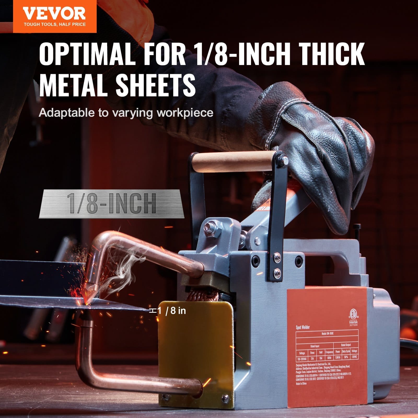 Electrode Arm Length: 5.9 in / 150 mm,Welding Thickness:1/8-inch,Rated Input Capacity: 1.5KVA,Item Model Number:DN-100E,Maximum Output Current: 6500A,Duty Cycle: 50%,ProductDimensions: 16.93 x 4.72 x 10.24 in / 430 x 120 x 260 mm,NetWeight: 26.5 lbs / 12 kg
