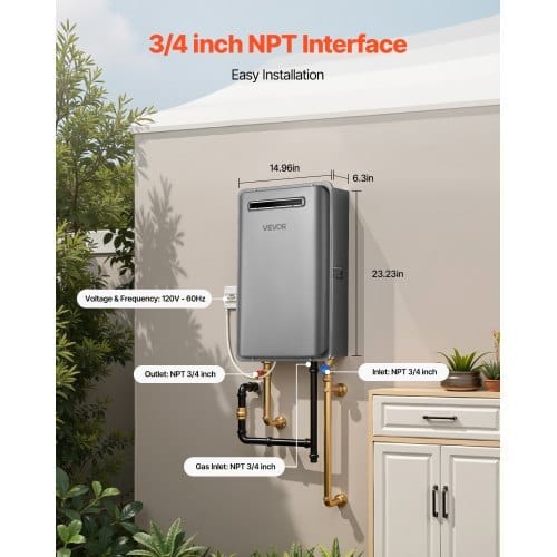 VEVOR Propane Tankless Water Heater, 5.3Gal Outdoor 120000 BTUInstant Hot Water Heater, Smart Temperature Control & 3/4 inch NPTInterface& Multiple Security Protections for Whole House, SilverGray