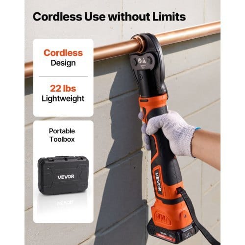 Rated Output Force: 24KN,Crimping Standard: ProPress Copper PipeVUS,Jaw Quantity & Size: 3 pcs (1/2″, 3/4″, 1″),Item Model Number:MP-2430,Battery Specifications: 18V Max, 2.0Ah,Product Dimensions:4.7 x 3.1 x 15.7 in / 120 x 80 x 400 mm,Net Weight: 22.0 lbs / 10kg,Rated Voltage: DC 18V,Battery Quantity: 2 pcs