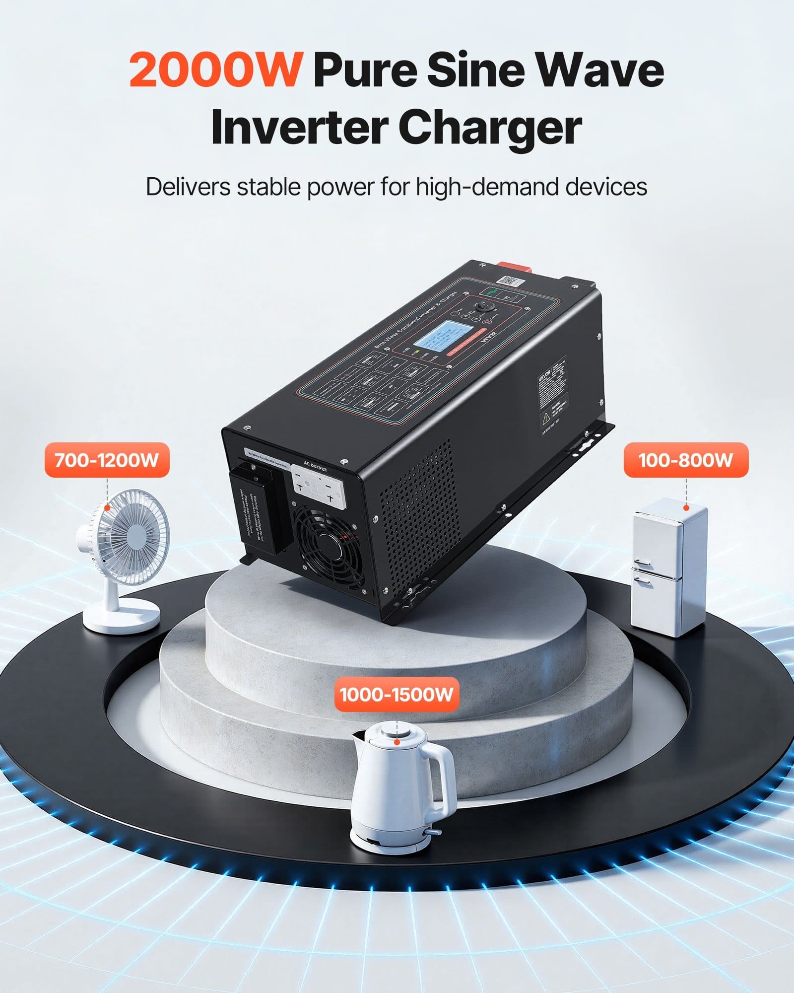 Charging Current: 50A / 35A / 25A / 15A,Item Model Number:BL-W3024V-L,Rated Power & Peak Power: 3000W / 9000W,ConversionVoltage: DC 24V to AC 120V,Compatible Battery Types: 24V LiFePO4,Lithium-ion, AGM, Sealed Lead Acid, and Flooded Lead Acid,NetWeight: 39.53 lbs / 17.94 kg,Output Waveform: Pure Sine Wave