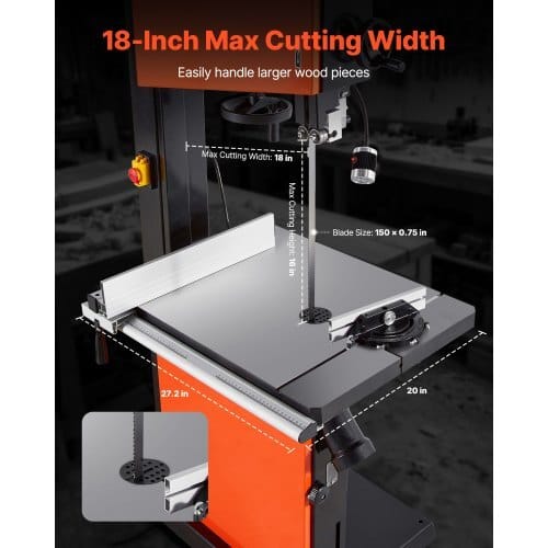 Maximum Cutting Height: 16 in/406 mm,Type: Benchtop Band Saw,BladeLength: 150 in/3810 mm,Item Model Number: HBS450,Rated Power:2240W/3HP,Work Table Size: 26.8 x 19.0 in/681 x 482 mm,MaximumCutting Width: 18 in/457 mm,Blade Width: 0.75 in/19 mm